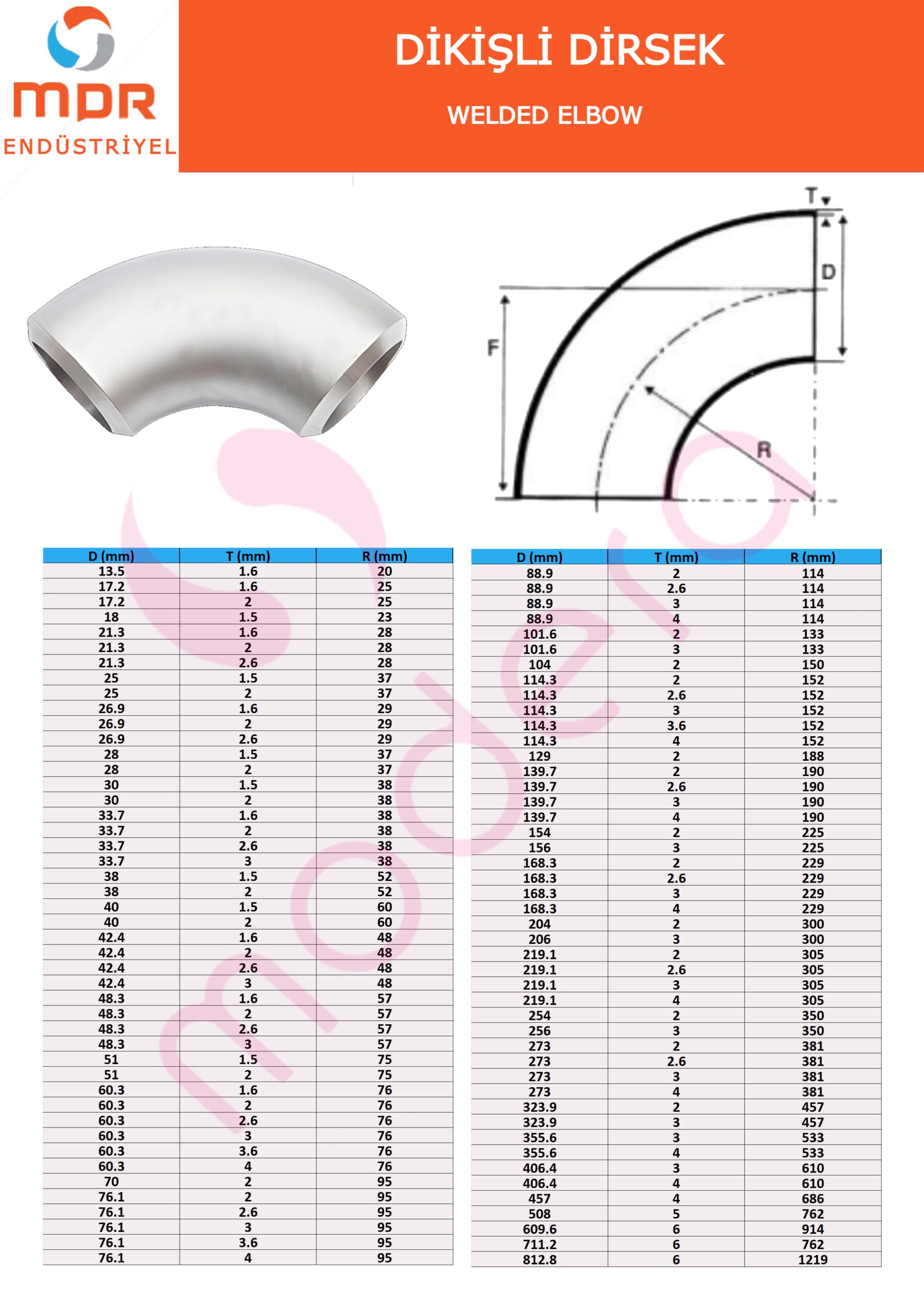 PASLANMAZ 90° KAYNAKLI DİRSEK (DİKİŞLİ-DİKİŞSİZ)