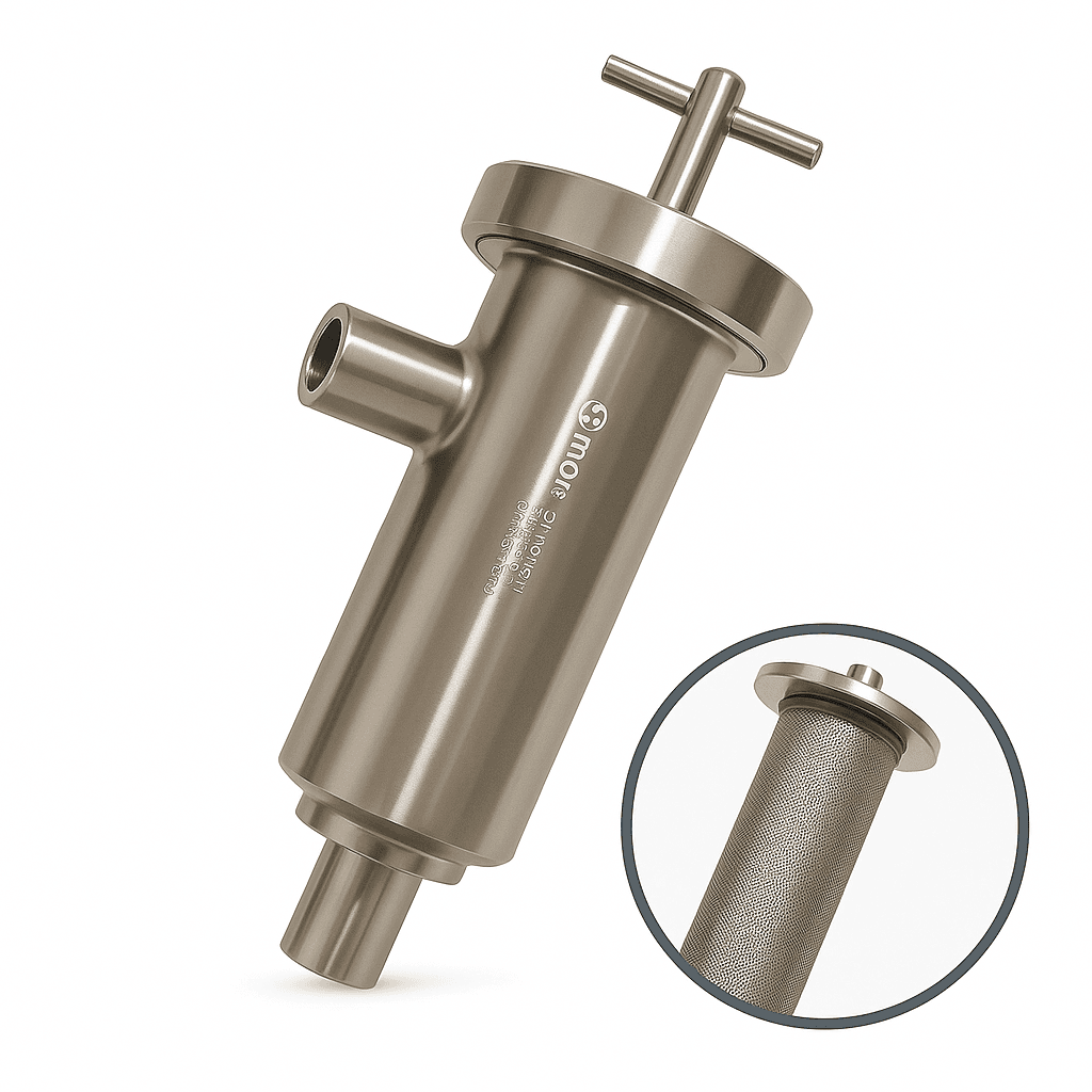 Paslanmaz çelik gövde, korozyona karşı yüksek dayanıklılık sunar ve zorlu çalışma koşullarına uyum sağlar. Kolay sökülüp takılabilen filtre elemanı, temizlik işlemlerini hızlandırır ve hat üzerinde kesintisiz çalışmaya olanak tanır.