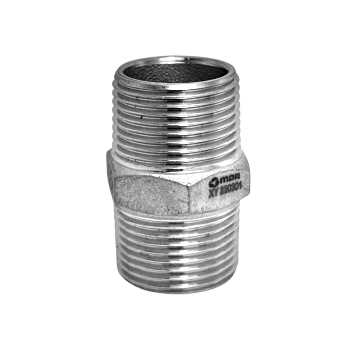 Paslanmaz Altı Köşe Çift Taraflı Nipel – Dayanıklı ve Güvenli Boru Bağlantısı