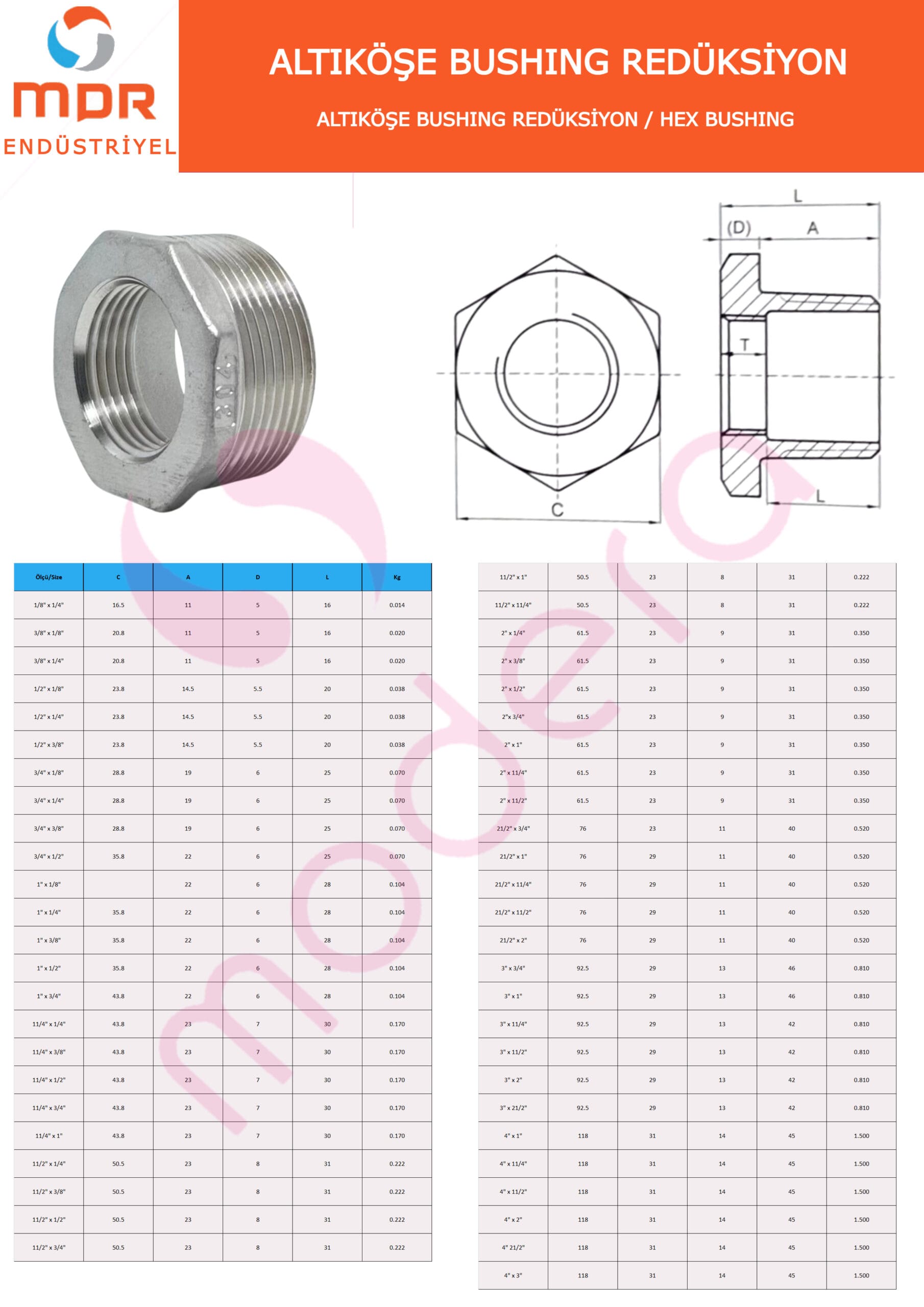 PASLANMAZ BUSHING REDÜKSİYON HEX
