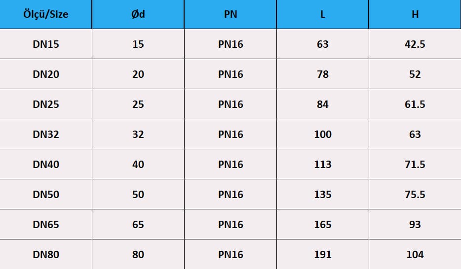 📏 Çap Seçenekleri: DN25 – DN100 arası farklı çaplar