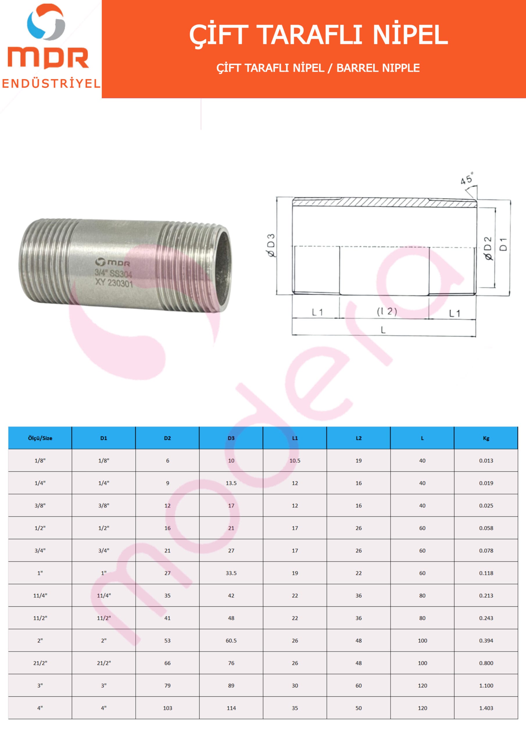 Çift taraflı nipel, iki boru hattını güvenli, sızdırmaz ve dayanıklı bir şekilde birleştirmek için kullanılan bağlantı elemanıdır. Her iki ucunda da erkek diş bulunan tasarımı sayesinde borular arasında sağlam bir geçiş sağlar